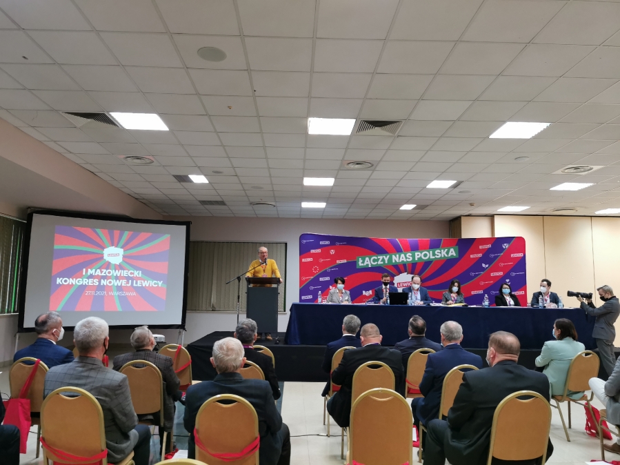 Warszawa - dn. 27.11.2021r. sala konferencyjna Hotelu Airpol SANGATE w Warszawie była miejscem obrad I Mazowieckiego Kongresu Wojewódzkiego Nowej Lewicy, gdzie uczestnikami byłonr 2 Włodzimierz Czarzasty a 174 delegatów reperezentujących województwo mazowieckie frakcji SLD oraz frakcji Wiosny w tym m.in. delegaci okręgu radomskiego. Gośćmi Kongresu byli m.in. Wicemaraszałek Sejmu IX Kadencji, Współprzewodniczy Nowej Lewicy Włodzimierz Czarzasty, Przewodniczący Koalicyjnego Klubu Parlamnetarnego Lewicy Krzysztof Gawkowski, Posłanka lewicy na Sejm IX Kadencji Sejmu RP Anna Maria Żukowska i inni.
